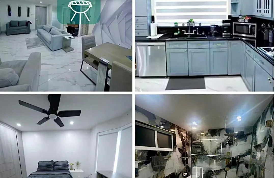 La villa New! Upscale Modern Waterfront Apartment 3Br 3Ba dispose d'une cuisine équipée dotée d'équipements tels qu'une cafétière/théière électrique, un réfrigérateur et de la verrerie pour préparer vos propres repas. L'aéroport international de Miami est à 23 minutes de route de ce logement.
